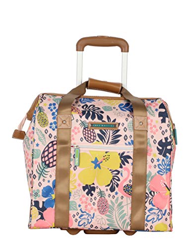 Lily Bloom, a handbag and accessories line focused on sustainable fashion, revels in vibrant colors and feminine prints. Each piece is made from a signature fabric created from recycled plastic bottles. The luggage collection uses only reinforced handle poles for extra strength and durability. The interior uses a compartmental design to help you separate belongs such as liquids for quicker access while maximizing storage space. This is a beautiful piece of traveling art piece for the environmentally conscious modern lady!