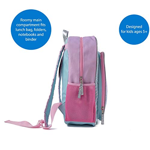 - SHINY SILVER TRIMS - An easy to grab top handle lets her hang the bag in her cubby or carry by hand. Silver zipper pulls make the compartments easy to open and close, and functional reflective strips on the straps add visibility and safety.