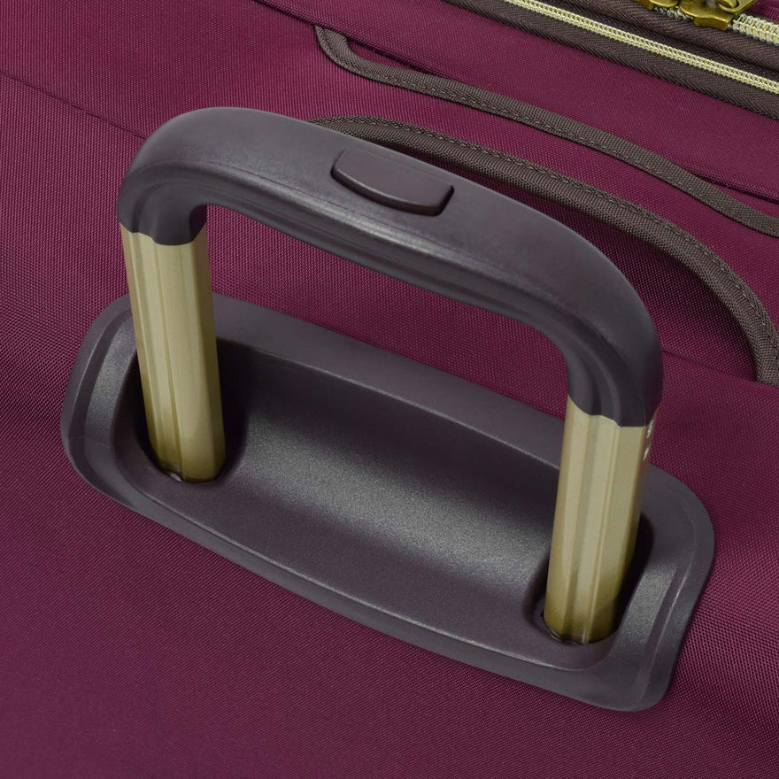 Hyper-lightweight, durable, and a luxurious design, the London Fog Coventry collection boasts a micro-weave poly-ballistic blend of fabric which allows each case to stand up to the rigors of travel while maintaining it's remarkable light weight. This London Fog Coventry 21 inch Expandable Spinner Carry On is perfect for short trips, or as your in cabin carry on. The 360 degree spinner wheels make maneuvering this bag down the isle or in any direction a breeze.