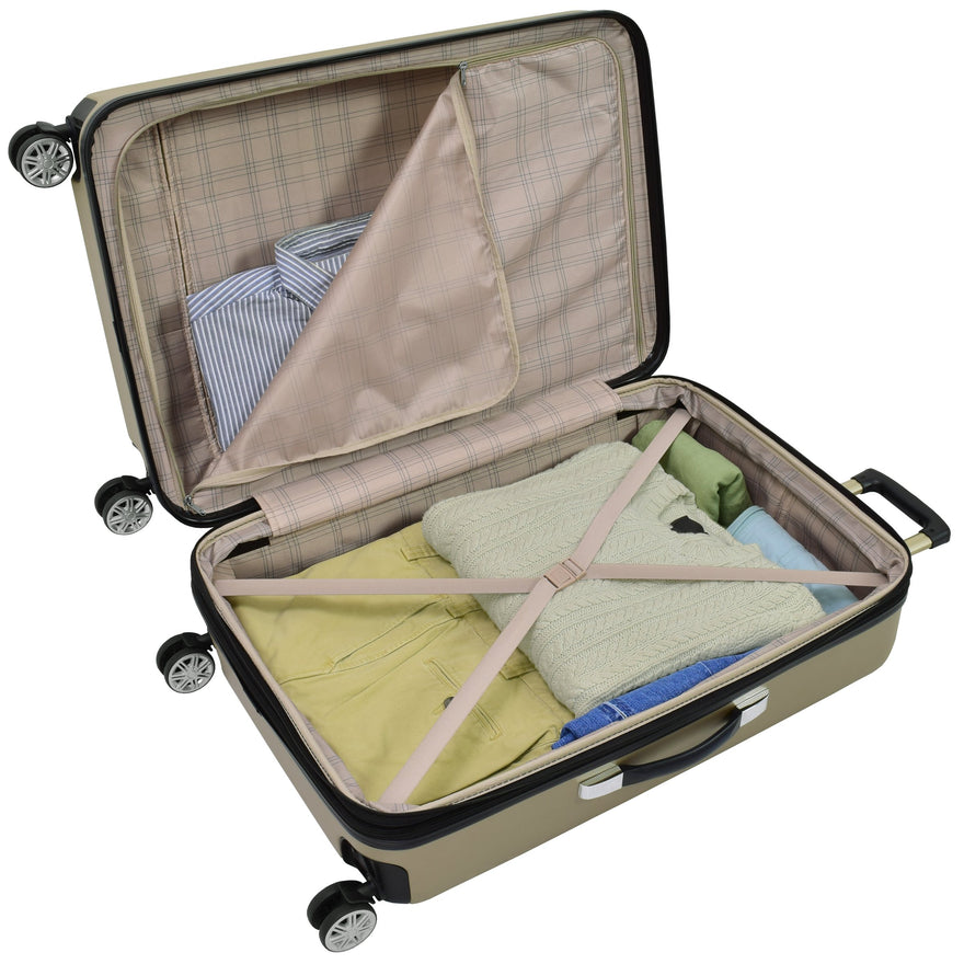 - Deluxe multi-directional 360 degree spin technology 8-wheel system. Expand 2" For additional packing capacity.