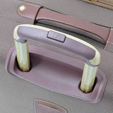 - Ergonomic comfort grip locking trolley handle, trolley also has aluminum channel tubes for added strength. Convenient top, side and bottom carry handles for easy lifting.