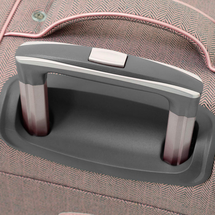 Details: London Fog Newcastle 24" 8-Wheel Spinner, Rose Charcoal Herringbone