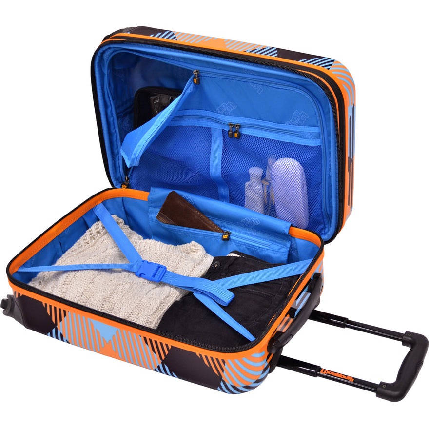 The Loudmouth Microwave Hardsided Expandable 22” carry on spinner from Traveler’s Choice is made from polycarbonate and ABS composite and features a shock resistant design. Show off your sense of style and fun with this brightly colored bag. Featuring 360° spinner wheels for ease of movement and a multi position pull up handle, this 22” bag is perfect for your next short trip. The case features a fully lined interior with tie down straps to keep your garments from shifting when on the road. The 2” expansion allows for additional packing capacity. Brighten up your travels with Loudmouth Hardside expandable luggage from Traveler’s Choice.