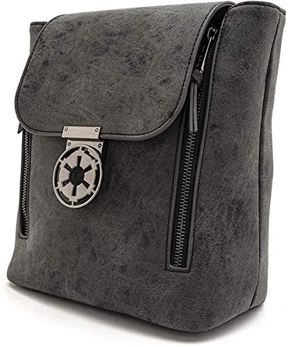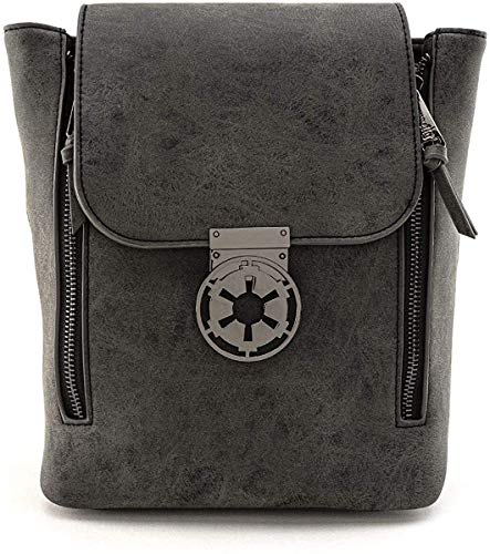 Details: Strike fear into the hearts of rebels across the galaxy with the Loungefly X Star Wars Imperial Convertible Backpack. Celebrating the timeless Star Wars Saga, this powerful cosplay backpack features a superb textured black faux leather base, arresting gunmetal hardware, staggering molded metal Empire symbol closure and convertible style that can be worn as a backpack or crossbody bag. This domineering Loungefly backpack is the perfect way to pledge your allegiance to the evil forces.