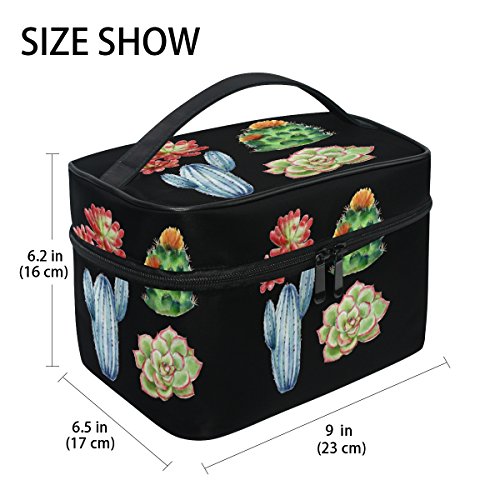 - Size: Cosmetic bags size at 9(L)x6.5(W)x6.2(H) in. Handy handle,lightweight and exquisite. Getting a makeup case is really more convenient at home, travel or be outside. It can also be used as a toiletry bag and receive package.