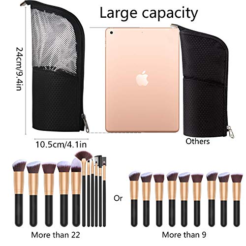 - LARGE CAPACITY AND LIGHTWEIGHT: The makeup brush bag is lightweight, compact and large capacity(size:10.5in X 4in X 1.5in),hold more than 22pcs brushes set. it has 9 elastic band slots for fixing effect. Reduce mess and save space.