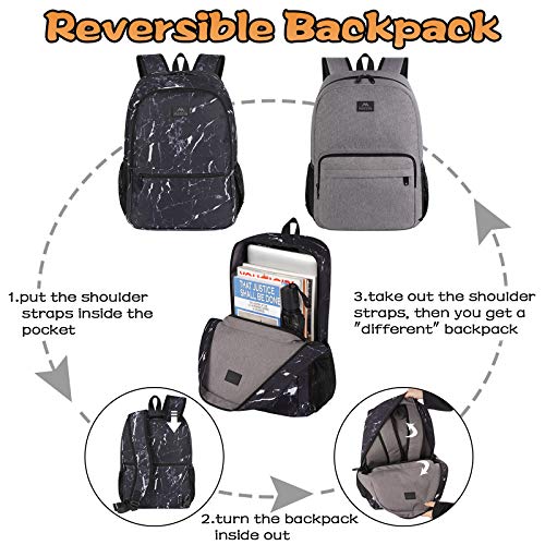 - LOTS OF POCKETS: This reversible laptop backpack offers you more storage options than others.With dual-use function, the originally served as the front compartment for the black side could be used as an inner laptop compartment of the grey side after turning the backpack inside out. While the back pockets where storing the shoulder straps could also be used as luggage strap or anti-theft pockets. Except that, there are more storage options changes of the backpack waiting for you to discover