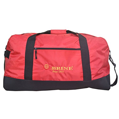 Details: Look fashionable as you walk down the street with this red and black bag in hand. Made of lightweight polyester, this 28-inch duffel bag weighs 1.8 pounds but holds as much as a 27-inch suitcase. The bag is designed with an end handle, and extra long reinforced webbing handles let you carry it over your shoulder. McBrine bag weighs 1.8 pounds but can carry as much as a 27-inch suitcase Has end handle and extra long reinforced webbing handles for carrying over your shoulder28-inch duffel bag is made of polyester Includes heavy-duty #10 zipper closure for extra security Bag has a zippered front pocket for extra packing space with no interior pockets Size measures 15.5 inches x 28 inches x 13 inches Type is lightweight, softsided, cargoBag is water resistant with a solid pattern Straps are foldable and adjustable Color is red and black One-year limited manufacture warranty
