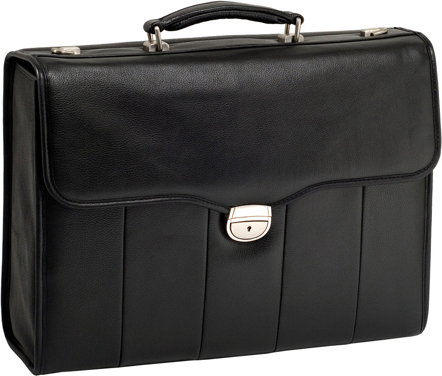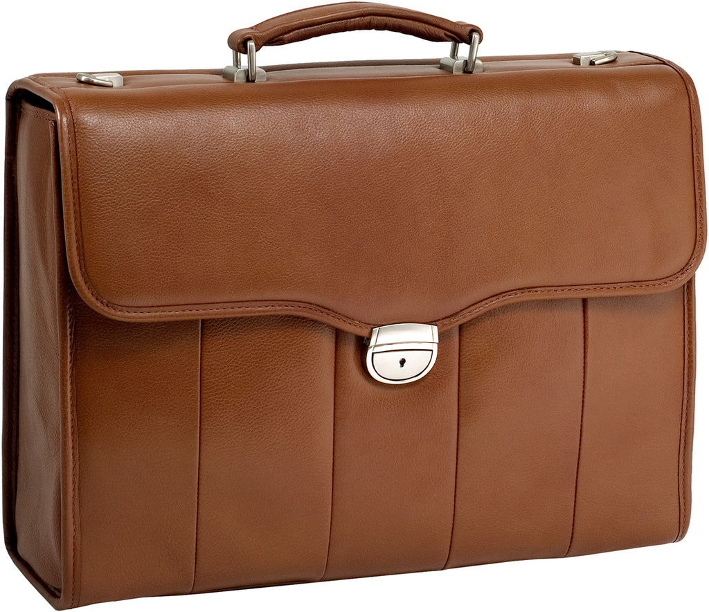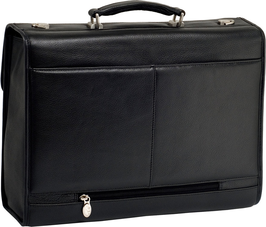 Stylish flap-over briefcase design features key lock. Open file pocket and secured zipper pocket under front flap. Main compartment padded with built-in 10 mm high-density foam laptop sleeve that protects laptops up to 15.4" in size and has organizer pockets for media devices. Back pocket for easy access files. Smart Zipper Attachment allows transport on extended handles of other rolling cases amp; luggage. Non-slip, shock absorbing comfortable shoulder strap helps alleviating body strain.