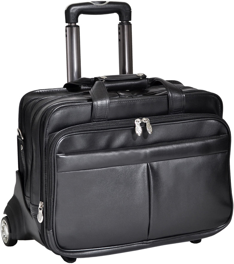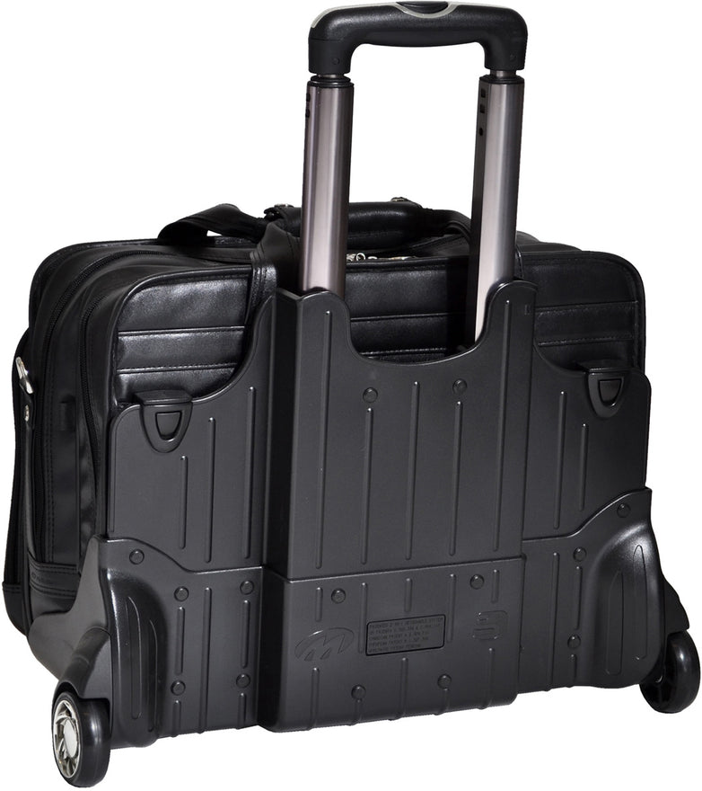 Patented 2-in-1 Detachable Wheel and Handle System. Front zipper pocket for small miscellaneous items. Front organizer pocket for media devices, cell phone, business cards, key holder and pens. Front compartment features a 3-file divider that expands 2" to allow 30% more space. Back compartment with 3 accessory pouches features a 17 in Dual Laptop Protection System with removable sleeve. Dual Laptop Protection System uses a high-tech ABS honeycomb frame to protect laptop from exterior impact and a sleeve with high-density foam to help absorb shock and prevent moisture intake. Smart Attachment Strap allows transport on extended handles of other rolling cases and luggage. Bonus! Protective Weatherproof Cover. Advanced, non-slip, shock absorbing neoprene Comfort Flex Shoulder Strap stretches for comfort, alleviating body strain.