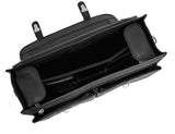 Stylish, flap-over design with dual slip lock clasps. Dual front pockets hold small accessories. Main compartment features storage space for important documents, secure zipper pockets and padded laptop sleeve with small accessory pockets. Side pockets for small miscellaneous items. Interior organizer for pens, business cards and small devices within main compartment. Built-in padded laptop sleeve fits and protects most laptops up to 15.4" in screen size. Adjustable, non-slip, shock absorbing shoulder strap alleviates body strain. Smart Zipper Attachment allows piggy-back on extended handles of other rolling cases amp; luggage.