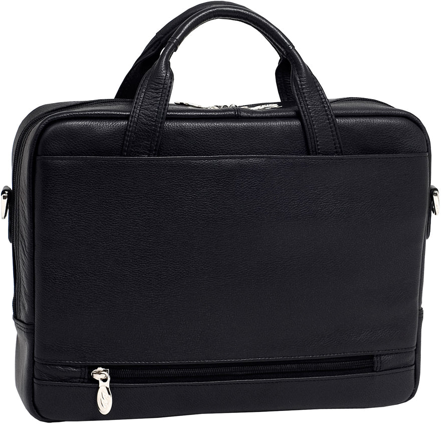 Front zipper pocket holds small accessories. Main zipper compartment features an interior organizer for pens, business cards and small devices. Main zipper compartment features one file pocket. Main compartment also features a built-in padded laptop sleeve that fits and protects most laptops up to 17" in screen size. Adjustable, non-slip, shock absorbing shoulder strap alleviates body strain. Smart Zipper Attachment System allows you to piggy-back your case on the extended handles of other rolling cases.