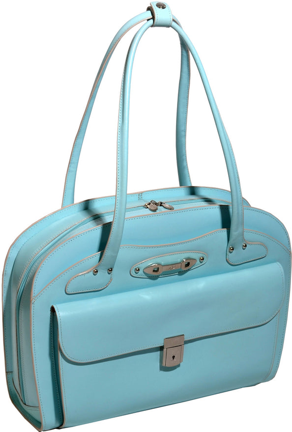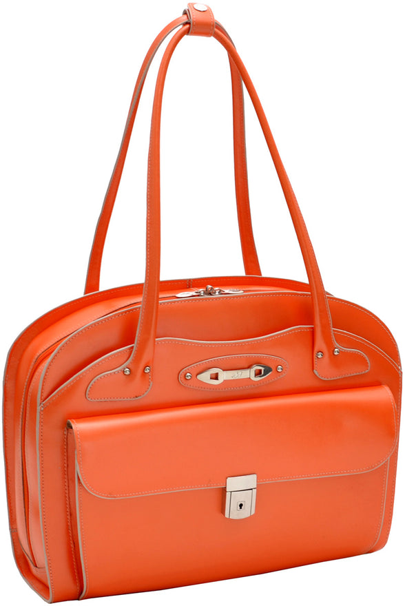 Small front pocket with key lock. Front and back pocket for files. Main compartment divided by secure zipper pocket. Built-in padded laptop sleeve that fits laptops up to 15.4". Tubular over the shoulder straps Orange, green, blue, and pink cases are trimmed in sand.