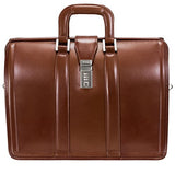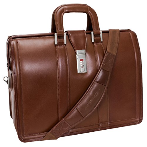 Details: Sophisticated design with secure 3-digit combination lock Organizer with storage space for media devices, cell phone, business cards and pens 3-section construction with padded middle section that protects laptops up to 17” in size and two divider sections for documents Non-slip, shock absorbing neoprene shoulder strap stretches for comfort alleviating body strain