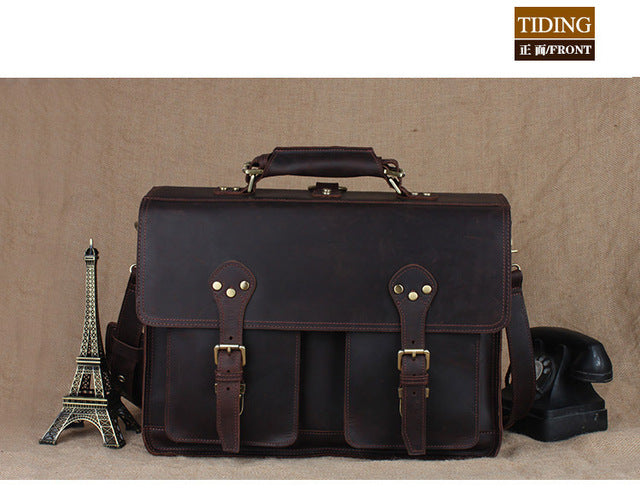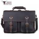 Men Crazy Horse Genuine Leather Briefcase Handbags Leather 17" Laptop Bag Big Shoulder Crossbody