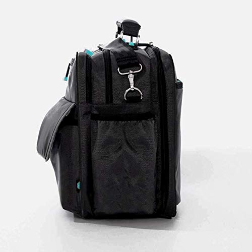 Details: THE GUARDIAN 2.0 MEDICAL SHOULDER BAG with easy grab handles. Black with teal and reflective trim. All materials treated with a non-toxic and eco-friendly coating to keep your bag safe no matter where you place it. This is the perfect Home Healthcare shoulder or and everyday medical supply bag for doctors and home health nurses and all healthcare workers on the go. Sturdy, rugged, and attractive medical supply bag. New Gear Medical bags feature an added layer of protection provided by Chitosan, the non-toxic, eco-friendly coating that keeps your bag safe. SUPPLIES NOT INCLUDED. Private labeling available. Uses: Home healthcare nurse bag, practicing RN bag, paramedic bag, travel nurse bag, doctor bag, medical work bag. Black with teal accents, and reflective trim.