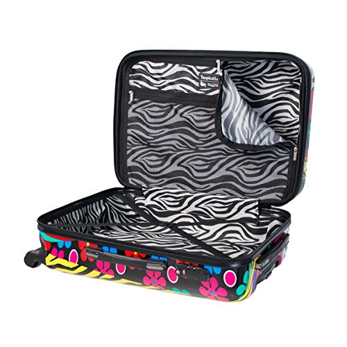 Details: The creation of the pop fiore - hard side spinner luggage began with one complex goal. The fusion of art and science together. When design and craftsmanship meets state of the art our experience is revolutionary. The Mia Toro brand meaning "my bull" in Italian simply stands for strength, beauty, technology and how your travel experience will change to a new exciting level -vibrant and elegant Mercedes art -Glossy finish that enhances the art -embossed ridged contemporary design with armored corners -light weight armor-flex composite -ergonomic gel grip handle -light weight trolley -dura-lock TSA friendly design -flex pack design expands 2" to add 25% more packing space -glide-tech dual wheel multidirectional 360 degree dual wheel provides smooth and stable motion -zipper divider- a fully zippered panel creates a second compartment to keep your possessions organized -compression straps and clasp are easy to use and keep your personal items secure -Mia Toro Italy offers a "world wide 10 year Cloud protection" warranty app covers your claims within 24 hours with the part simply shipped to you. You don't even have to call us! it is the world's first virtual warranty and your claims are handle all through your app. Totally hassle free and no worries
