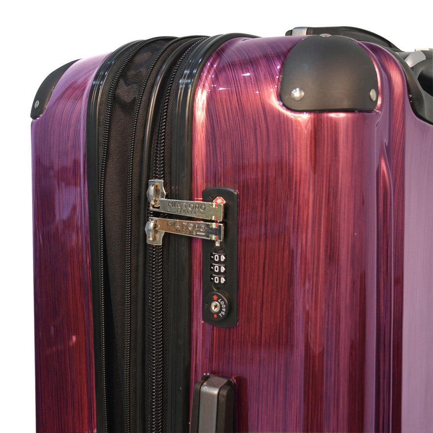 The Mia Toro Spazzolato Metallo hardside spinner luggage began with one complex goal, to Fuse art and Science together. The durable hard shell construction is made of hardside Composite, using the finest wheels, handle grips and the utmost detail to perfection and craftsmanship.