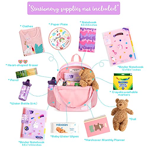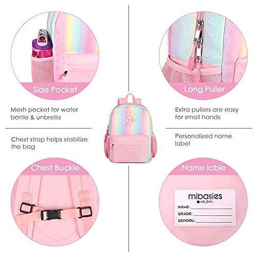 Details: Mibasies girl's backpack has a just-right size that’s perfect for packing all the essentials, plus some snacks! Your child will love this fun new addition to their school and travel gear. Features: ★Made of durable Polyester fabric, Water resistant, very cute. ★The zipper is well made, slides easily and smoothly. ★Scientific and reasonable compartments, makes your essentials lay in the bag systematically. ★Fresh colors with cute shiny glitter will catch everyone's eyes and get a lot of compliments from your classmates and other people. .