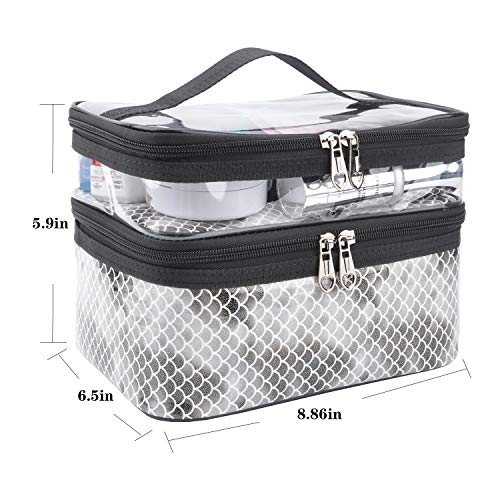 Details: This portable travel cosmetic bag is made of premium zip and premium fabric. High-quality materials ensure a long service life. It has two floors and a large space underneath, which can store cosmetics, eye shadows, makeup brushes and more. The upper layer is a little bit smaller and can store lipsticks, creams and other items. This layer is made of transparent material so that you can clearly see what is inside. Of course it can also be used as a toiletry bag. Large space for towels and toiletries. The small space above can store toothbrushes and toothpaste. This is a versatile storage organization. It's worth your possession.