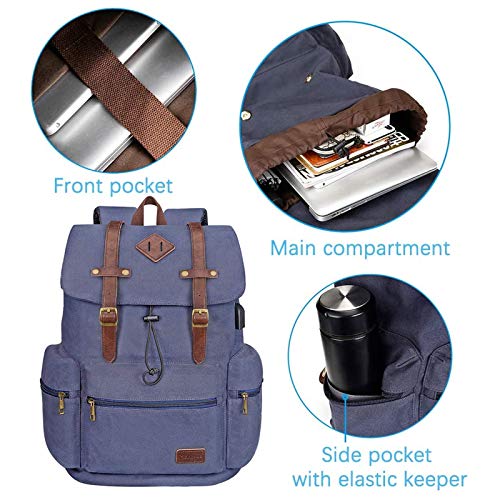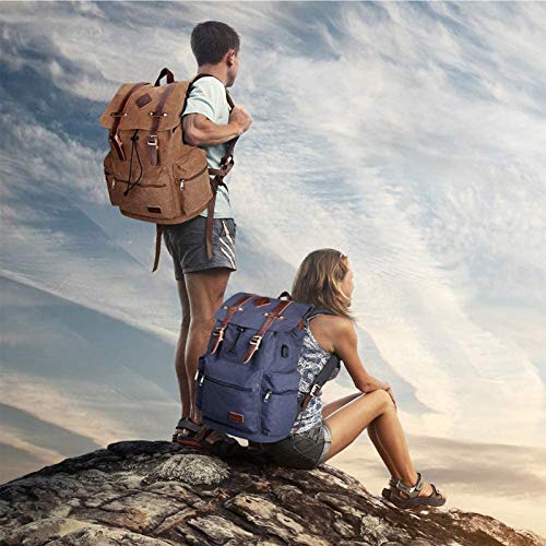 Details: Modischer Laptop-Rucksack-Maße: 41 cm H x 31 cm L x 16 cm B. Vintage-Laptop-Tasche, ein Fach ist geeignet für die meisten 15,6 Zoll & Slim 17 Zoll Laptops; ein Fach passt für 11 Zoll Tablets. Insgesamt 7 Fächer für den täglichen Bedarf. Geräumiger und komfortabler Rucksack: Retro-Rucksack innen ist gepolstertes Laptopfach und gepolsterte Tablet-Tasche; dieser Rucksack hat auch einen Klettverschluss, um Ihre Elektronik sicher aufzubewahren. Bequeme Schultergurte mit Netzgewebe und verstellbaren seitlichen Kompressionsriemen, die sich gut an Ihre Schultern anpassen. Strapazierfähiger und stilvoller Canvas-Rucksack: Hergestellt aus hochwertigem, langlebigem Segeltuch und veganem Lederrand. Alle Beschläge sind aus massivem Messing; Klappe mit Magnetverschluss für Komfort und Aussehen des Reiserucksacks. USB-Ladeanschluss: Mit externem USB-Ladeanschluss und integriertem Ladekabel bietet dieser USB-Rucksack Ihnen eine bequemere Möglichkeit, Ihr Handy unterwegs aufzuladen. Modoker Canvas Leder Laptop Rucksack verfügt über einen Vintage Look mit modernen Komfort. Ein toller Rucksack für Wandern, Camping, Reisen, Schule, Outdoor-Aktivitäten, oder nehmen Sie ihn zur Arbeit, im Büro, in der Schule oder zu anderen Indoor-Aktivitäten; es ist auch eine perfekte Schultasche oder Büchertasche für Männer, Frauen, Studenten und Menschen jeden Alters.