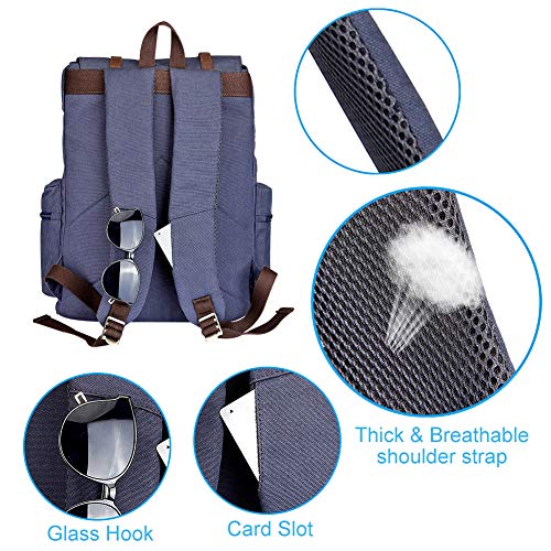 - BACKPACK with LOTS OF POCKETS: 4 interior compartments and 3 exterior zippered pockets. A quick access card pocket in the left side shoulder strap, and a glasses hook on the right. The adjustable reinforced shoulder straps are wide and soft, which fits your body and eases the stress of your shoulders