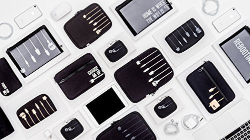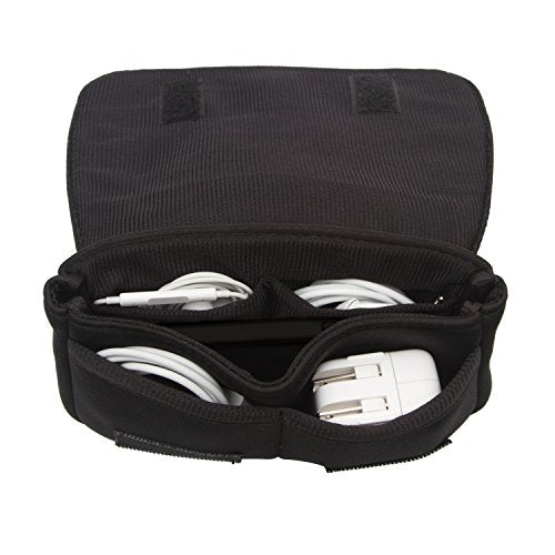 Details: Never be powerless again! Store and organize your tech accessories all in one place when you are on the go. Made of durable and protective neoprene, our charger case features 5 inner compartments including a large middle one that can hold your cords, chargers, travel adaptors, ear bud cases and even your cell phone. Great for travel, school, briefcases and purses. Cords and cables not included.