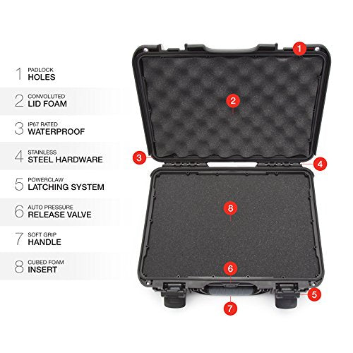 - Interior Dimensions L13.2" x W9.2" x H4.1" | Exterior Dimensions L14.3" x W11.1" x H4.7" | Includes a 1 layer cubed foam insert with base pad and lid foam