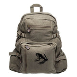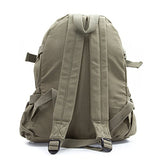 Versatile vintage canvas backpack. The bag has a main compartment that easily holds notebooks, supplies, books, and all your other daily necessities. The small size backpack can hold a 12-inch laptop, while the large size backpack can hold a 15-inch laptop. This bag features washed cotton canvas material, padded shoulder straps, 3 front zippered pouches, one main compartment, 2 side pockets with elastic and tie-down straps, and a top carry handle.