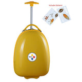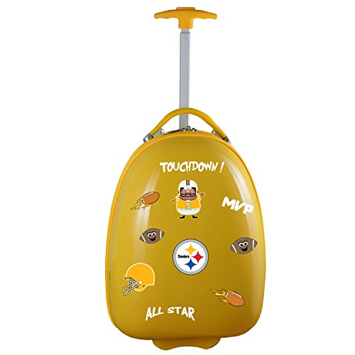 Details: This NFL kids Lil' Adventurer luggage Pod made My mojo is ideal for young explorers who love to travel and want to show off their team spirit. Each luggage Pod measures 18" in length and boasts a dual interior compartment for convenient storage. It is embellished with an NFL team colored logo and features 100% ABS hard-shell exterior for long-lasting use. The quick release telescoping handle and in-line skate wheels ensure smoother Rolling which is perfect for the little adventurers who are ready to embark on their journeys and explore the world.