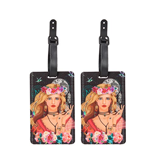 - Exterior features: exclusive nl print. Made of PVC rubber. PVC strap to ensure that they stay properly attached to your luggage while you are traveling. Back side features a clear window ID to enter all your information (name, address, telephone).