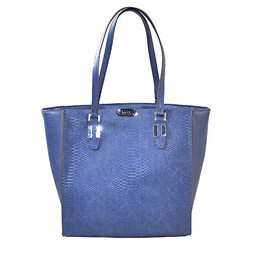 Details: Description Item: 449455 Brand: Nicole Miller The Gabby Tote is constructed in semi grain/metallic python PVC. Features an exterior back wall zipper pocket that offer extra space, while the shining hardware adds a gloss to the exterior. There's s silky lining protects the interior and increases the longevity and it includes a zipper center divider, four compartments and two compartments with magnetic snap closure. Features 16'' W x 7'' H x 11'' D 9'' handle drop Lined Magnetic closure Four compartments Interior: one slip pocket, one zip divider and one zip pocket Exterior: one zip pocket Imported