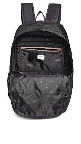 Details: A coated front provides this Nixon backpack with added protection from the elements. The exterior has a zip front pocket, buckle skate straps, a mesh side pocket, and 9 side pen slots. The zip side pocket fits a 13" laptop. Lined interior with 4 pockets and a pass-through port for easy headphone access. Padded back. Locker loop and adjustable shoulder straps.