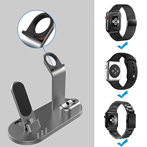 - 【SOLID DOCK WITH SUBTLE FINISH】Constructed of premium aluminum alloy with refined polishing, perfectly finished for a solid build, highlights edge and smooth surface. The non-slip pad on the bottom enhances the stability of the whole unit. The anti-scratch rubber and the TPU back protect your iWatch and iPhone from scratching.