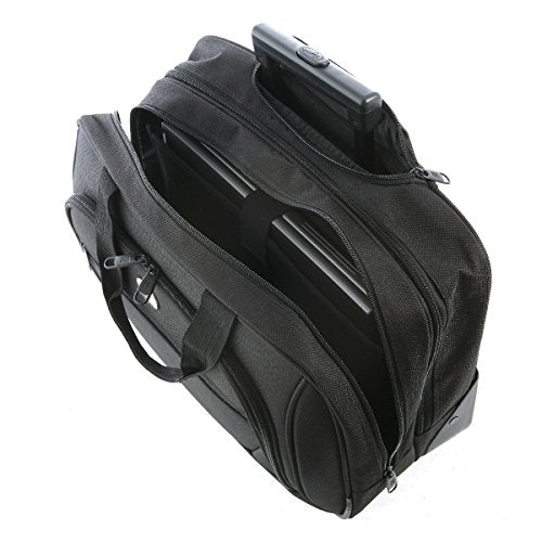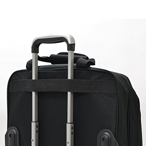 Details: This hybrid deluxe rolling tote with laptop compartment is constructed of polycarbonate with 1680 d, ballistic, corner cut metal ball bearing wheels, hideaway push button retractable handle, heavily padded main laptop compartment, spacious main compartment for maximum packing capacity, multi front pockets, elegantly imprinted full interior lining