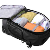 - Constructed of durable jacquard polyester, high quality push button locking handle system, and durable smooth rolling wheels with protective housing.
