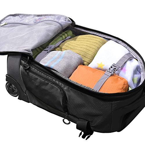 Details: The cascade 20" Outdoor upright carry-on w/ hideaway backpack straps is constructed with jacquard polyester and includes a high quality push button locking handle system with dual supported inline skate wheels for the most adventurous traveler. Built in backpack straps offer an easy mode of carrying when off trail. Perfect for your weekend adventure or your personal airline carry-on.