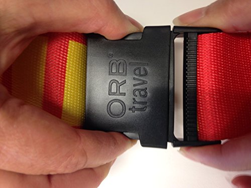 • 2" Wide by 70" long. Secure buckle closure ensures security heavy duty quick connect buckle. INSTANTLY SPOT YOUR LUGGAGE ON THE CAROUSEL ORB Travel Luggage Strap - Spot it, Secure it TM. TRAVEL WORRY FREE knowing your luggage will not burst open during transit. WIDE VARIETY OF UNIQUE COLORFUL DESIGNS - differentiate your luggage from those using a multitude of standard, plain colour luggage straps. EASILY SPOT YOUR LUGGAGE from far or near peace of mind during all stages of baggage handling.