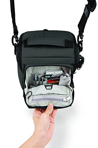 With superior organization and unrivaled gear protection, the Camsafe Z6’s fabric is embedded with eXomesh Slashguard, a steel wire mesh that protects your gear from a quick slash-and-run theft. Flexible, lightweight steel wire runs through the adjustable Carrysafe Slashguard strap to help prevent slashers from slicing through and running off with your gear, and smart zipper security attaches the zipper pullers to discreet hooks to help prevent pickpockets. Turn & Lock Security Hooks on the ends of the strap allow the bag to be attached to a secure fixture.