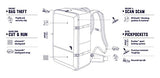 - Sleek, comfortable, and secure 40-liter backpack with anti-theft technologies built in; ideal for carrying belongings on adventures abroad, around town, or as a handy carry-on