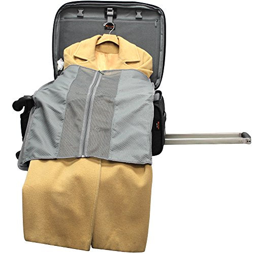 - Fully removable functioning garment carrier along with generous size front pockets for greater packing. Expandable by 2 inches