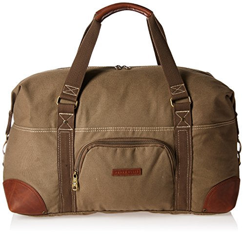 Details: Get away for the weekend with this 22" carry-on weekender duffel bag. This duffel bag is made of canvas with PVC leather trim accents and is reinforced at all stress points with accent stitching. Padded handles provide comfort as you travel to your destination. Easily find your accessories with two additional pockets: one located on the front and another in the interior of the main compartment. Both sides of the duffel clip at the top and bottom to keep items compact. Or, un-clip to gain additional packing space.