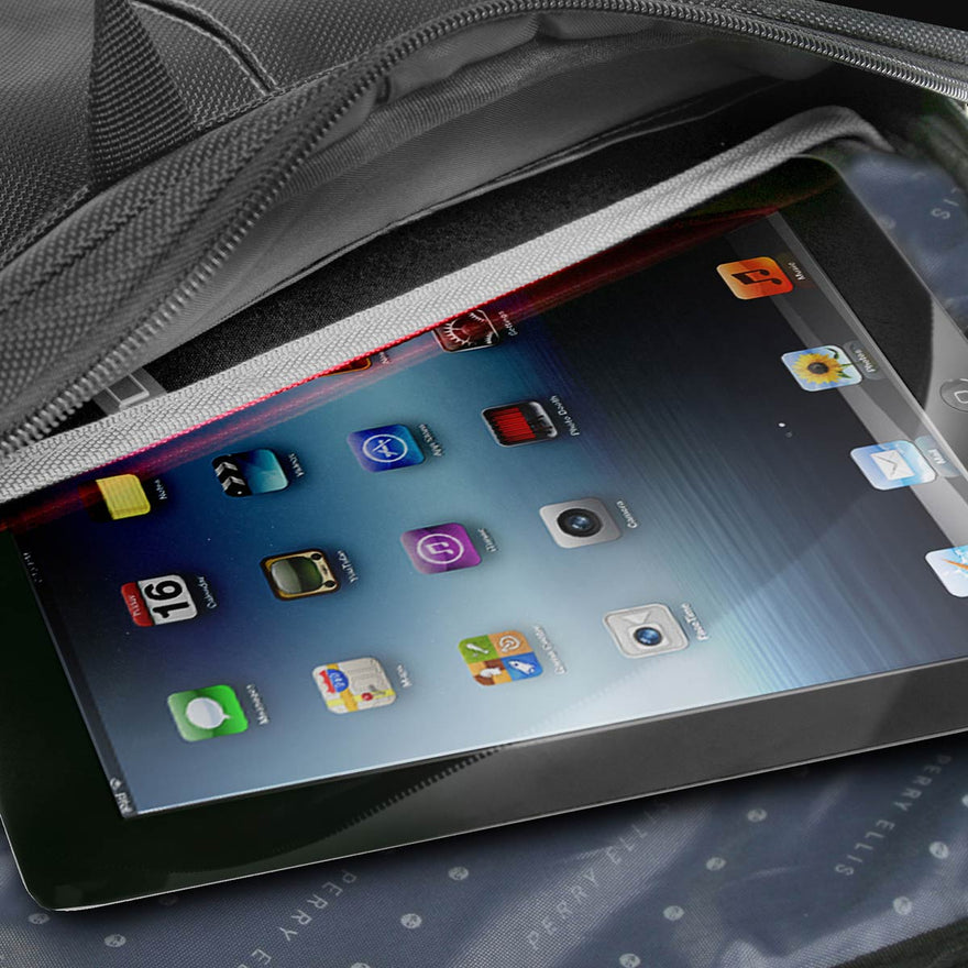 Carry all your business essentials with this Perry Ellis checkpoint friendly, laptop messenger bag.
