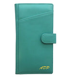 Details: This personalized RFID travel wallet is a must for any traveler. Made from 100% genuine leather, it is soft yet sturdy and able to hold up to the rigors of traveling. The travel wallet includes inside pockets for your passport, airline ticket/boarding pass and cash. It also includes 3 credit card slots. 1 clear ID window, and a pen loop. Ther are multiple pockets as well, including front and back slip pockets, a zippered coin pocket, and two inside slip pockets. Completely personalized with your initials or monogram (up to four characters). Just tell us how you want it customized. Excellent gift idea for anniversaries, weddings, bridesmaids, groomsmen, or any occasion! This travel wallet has a Radio Frequency Blocking technology to prevent personal information from being stolen by thieves using scanners. One less thing to worry about when you are traveling.