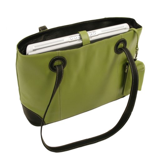 Details: Top-zip opening to main compartment with padded laptop pocket (15 inch x 11 inch x 2 inch), inside zip pocket, cell phone pocket and detachable coin pouch. Long double shoulder straps for easy carrying.