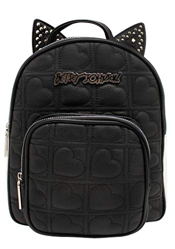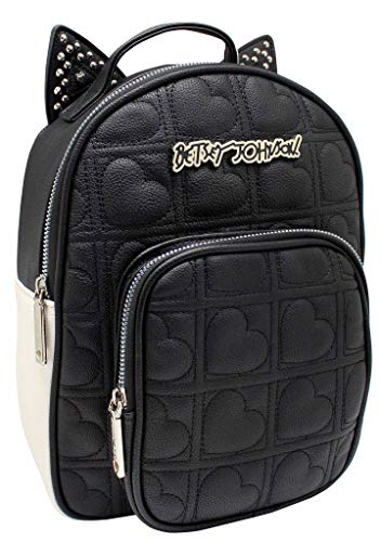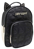 Details: Make a cute new addition to your bag collection with the Pretty Kitty Kitsch Mini Backpack from Betsey Johnson. This super cute festival backpack features a black colored PU leather base with cat ear detail, single top handle, dual adjustable shoulder straps with logo, front exterior zipper pocket, hardware logo accent, fully lined interior, and top zip closure. * Pretty Kitty Kitsch Festival Backpack * Width: 9" x Height: 10" x Depth: 5" * Quilted PU leather * Dual adjustable shoulder straps * Exterior zipper pocket/back slip pocket * Top handle * Fully lined interior with pockets * Black/Cream * Top zip closure