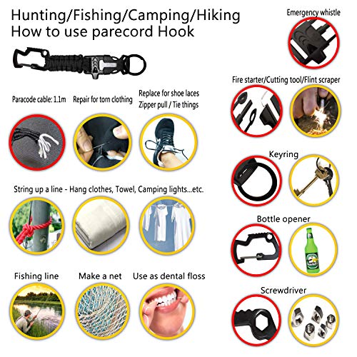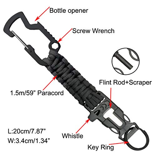 - INCLUDES EDC PARACORD KEYCHAIN - With 5 handy tools for camping, survival, and everyday. Tools include scraper, whistle, key ring, screw wrench, and bottle opener. You will always be the person who has the right tool to quickly complete the job. Great for RV, adventure, and travel.
