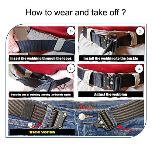 - RUGGED QUICK RELEASE BUCKLE - Made of rock hard Zinc Alloy forged to endure sudden force and temperatures up to 200 degrees. It's easy for you to open, simply press the release. Belt made of comfortable, breathable material that resists odors and keeps you cool. Fully adjustable with no belt holes. Let’s you adjust the correct length for comfortable.