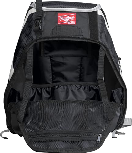 Details: Ideal for Baseball or softball, the Rawlings R500 Series Baseball/softball backpack makes it easy to carry all your equipment to and from the ballpark. This durable Baseball bag offers dedicated storage for two bats and features an external Velcro strip for your gloves. The customizable top valet tray holds tape, bat weights, and other small supplies, and the bag's main compartment converts to a game time shelf to provide easy access to all your gear. A fence hook makes it easy to attach your bag to the dugout fence during the game, while the durable tarpaulin bottom resists scratches and holes while providing an easy-to-clean surface. The Rawlings Baseball/softball backpack is available in 11 colors designed to perfectly match your team.