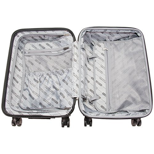 Details: 20" Lightweight Hardside ABS Expandable 8-Wheel Upright / Carry-On Luggage. Expands an additional 2.0" inches for greater carrying capacity. Multi-directional 8-wheel spinners allow smooth, 360 Degree movement over any rough surface for complete mobility free-weight rolling, relieving any pressure from your arms while on the move. Lightweight construction helps you adhere to airline weight restrictions to avoid unneeded airport fees. Durable ABS hard-shell exterior body material with fully lined interior. Molded corner guard reinforcements for absorbing and deflecting shock for maximum impact resistance. Self-repairing coil zippers for long-lasting use. Fully lined interior main compartment features A zipper accessory pocket and garment restraint straps to hold your clothes and contents in place. Lid section features A large U-shaped zippered pocket which includes A mesh zipper pocket and elastic shoe pockets. Front lid features A large U-shaped zipper pocket allowing for double sided packing. Convenient flexible top and side grab handles and molded bottom grab handle allows for easier lifting and maneuvering. Molded side feet allow luggage to stand upright on its side. Sturdy locking retractable push-button telescopic trolley handle conductive for simple, one-handed use. Meets most U.S. Based airline carry-on size requirements and fits into most airline overhead bin compartments. Manufacturer 10 Year Limited Warranty. Overall Size (Includes Wheels): 22.0" H x 17" W x 10.0" - 12.0" D. Weight: 7.65 lbs.